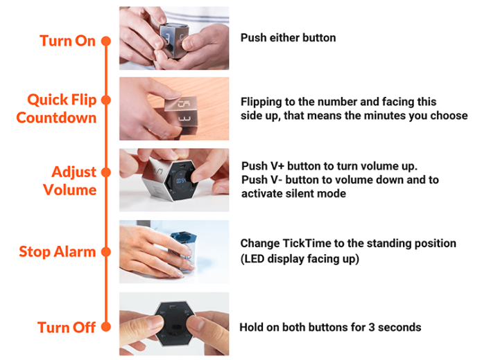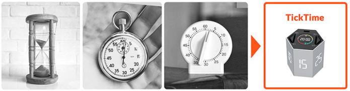 TickTime has 6 preset timings. Just flip TickTime so the time you want to count down is facing up. The timer starts automatically. So you won't waste a second and you'll get more out of every minute of every day.