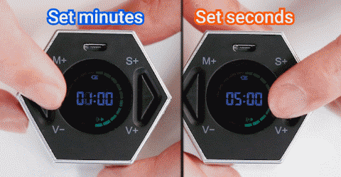 TickTime is a sophisticated timer. It is simple to operate by changing its positions. Meanwhile, if you want to manually set the time perfectly to every second, just easily push two buttons for setting the exact minute and second as you like.